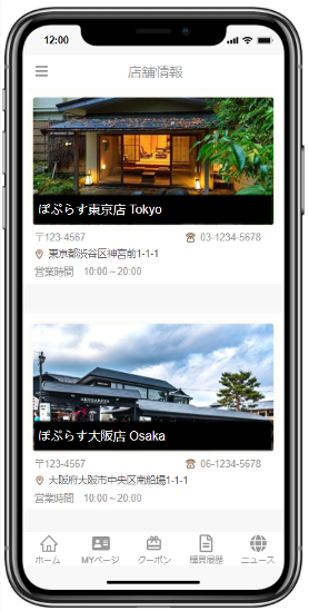店舗画像、店舗名、住所、電話番号、営業時間など、お客様の知りたい情報が一覧表示されます。電話番号をタップすると直接電話をかけることも可能なので、スムーズに問い合わせをできます。